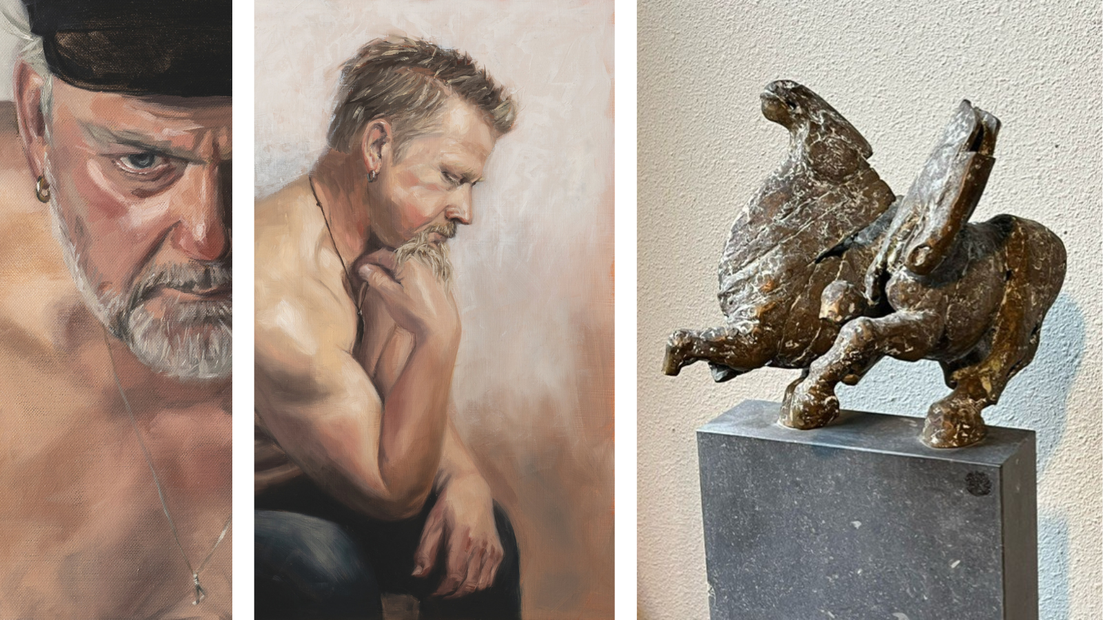 Twee kunstenaars, twee disciplines, één uitnodiging om anders te kijken. Vanaf 31 mei zijn in De Ateliers van De Wieger twee nieuwe tentoonstellingen te zien. In het Groot Atelier toont Willeke van der Weerden haar indrukwekkende serie Baard & Bast, bestaande uit twintig olieverfportretten. In het Klein Atelier is in ateliersetting een selectie van de sculpturen en schilderijen van Gerard Engels te zien. Beide kunstenaars nodigen de bezoeker uit om verder te kijken dan de oppervlakte, of het nu gaat om mens, dier of vorm.
